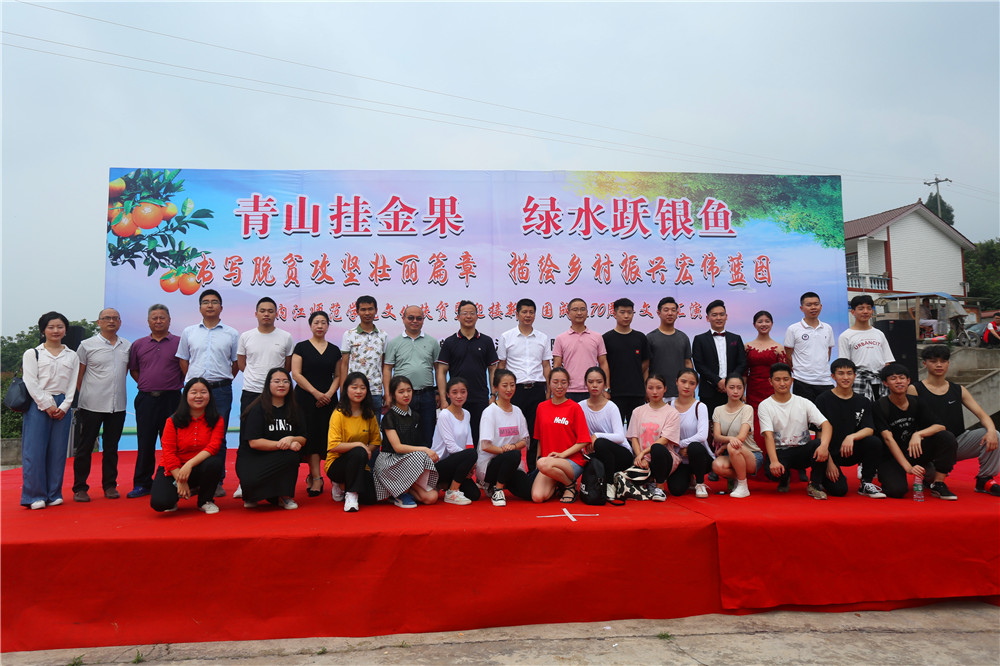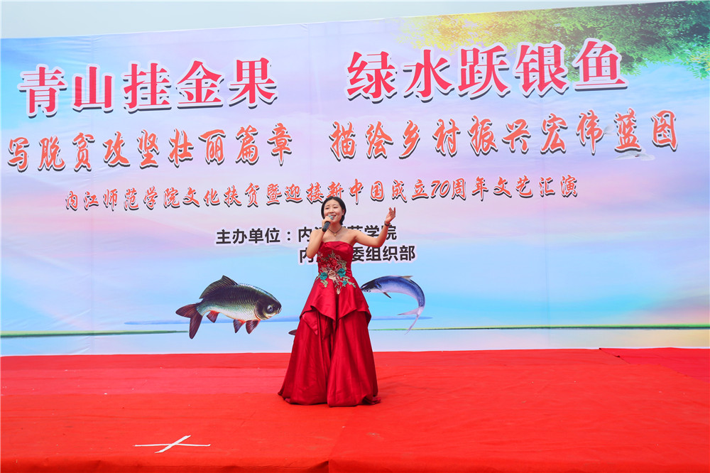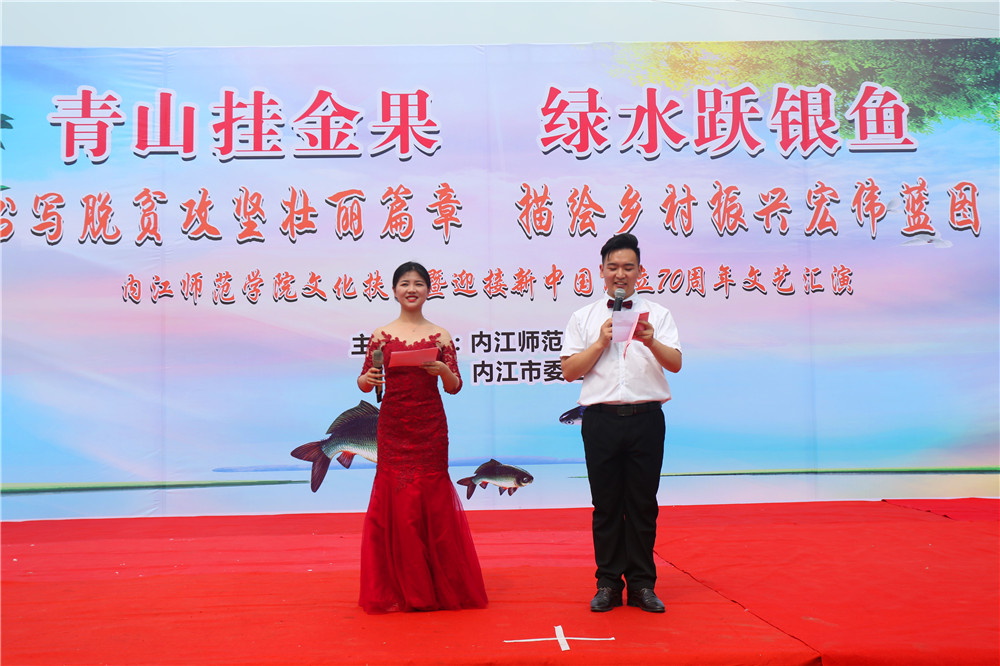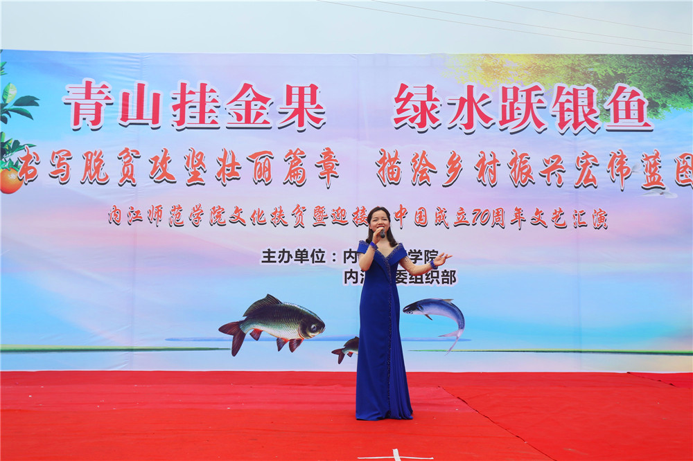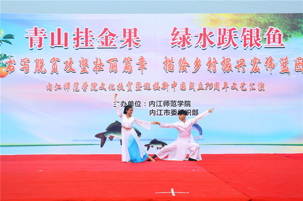 为丰富bv伟德国际1946对口帮扶地区群众的精神文化生活,认真贯彻落实精准扶贫政策,把高质量的文艺演出送到贫困群众身边。5月26日上午,公司三十余名师生走进了资中县金紫铺村展开了“bv伟德国际1946文化扶贫暨迎接新中国成立70周年文艺汇演”活动。内江师范公司党委副书记、纪委书记史仕新、内江兴隆村镇银行资中支行副行长郑萍、bv伟德国际1946公司党总支书记陈敏、副书记罗承松出席并观看了本次汇演。